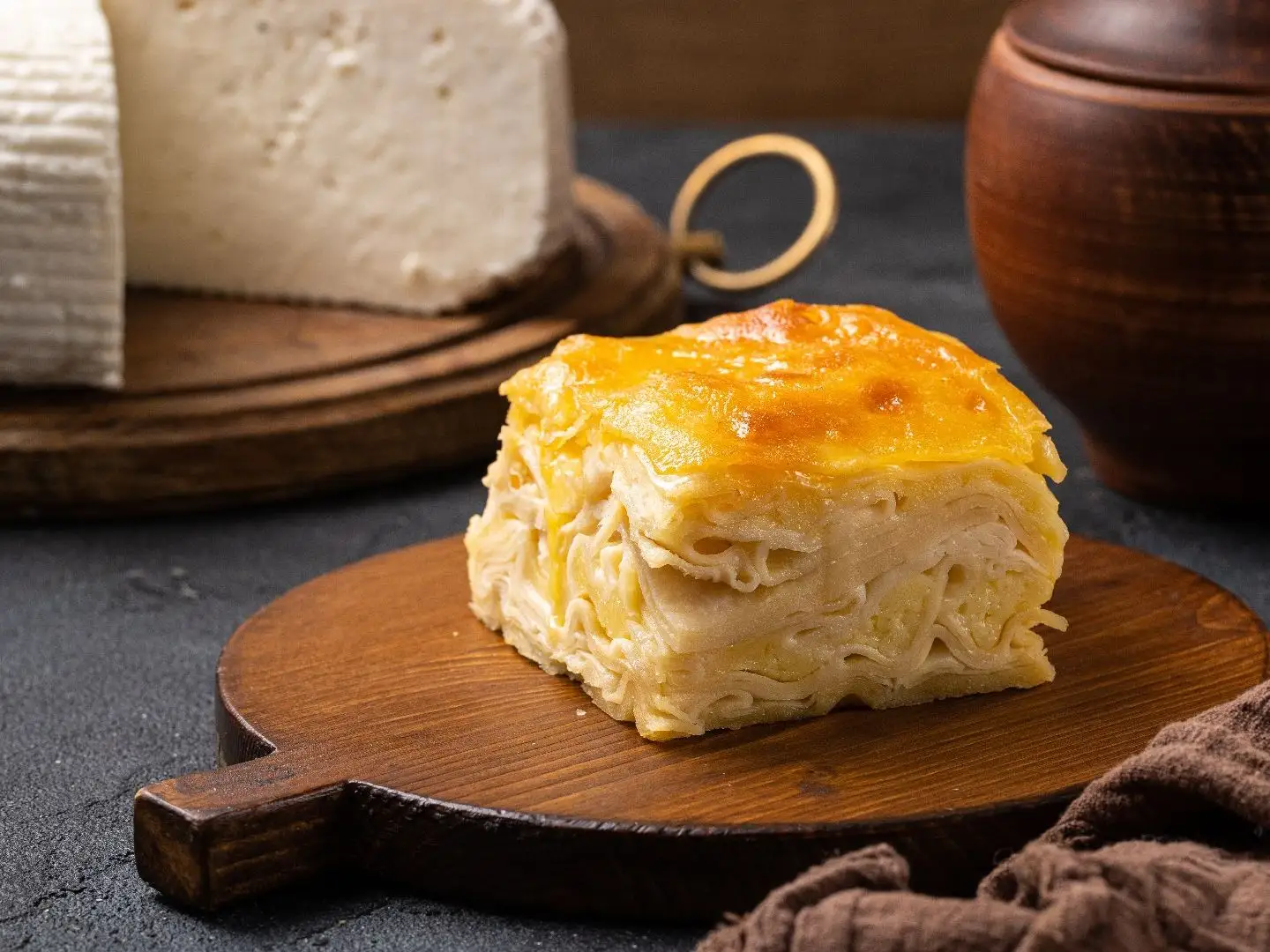 Первым выкладываем тонкий слой лаваша в кефире, далее тонкий слой сыра и так чередуем, пока не закончатся продукты