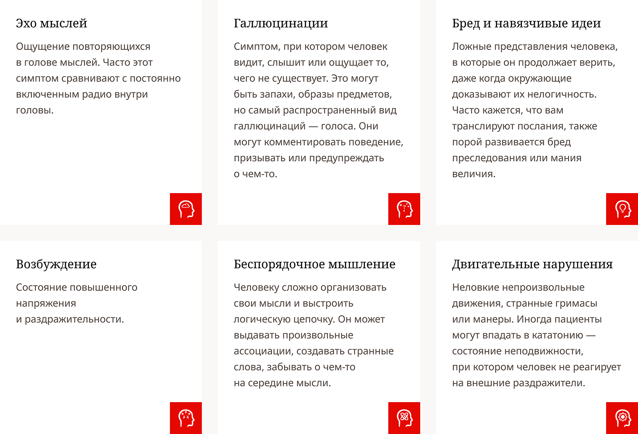 Позитивные симптомы — особенности поведения, которые не свойственны психически здоровым людям и выражаются в утрате связи с реальностью5.