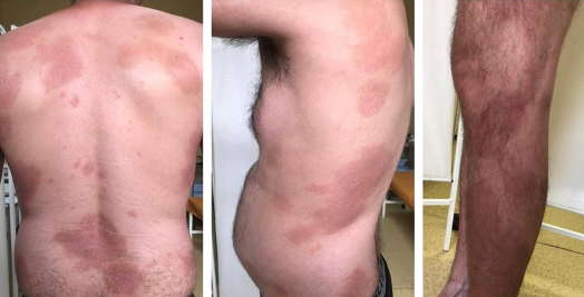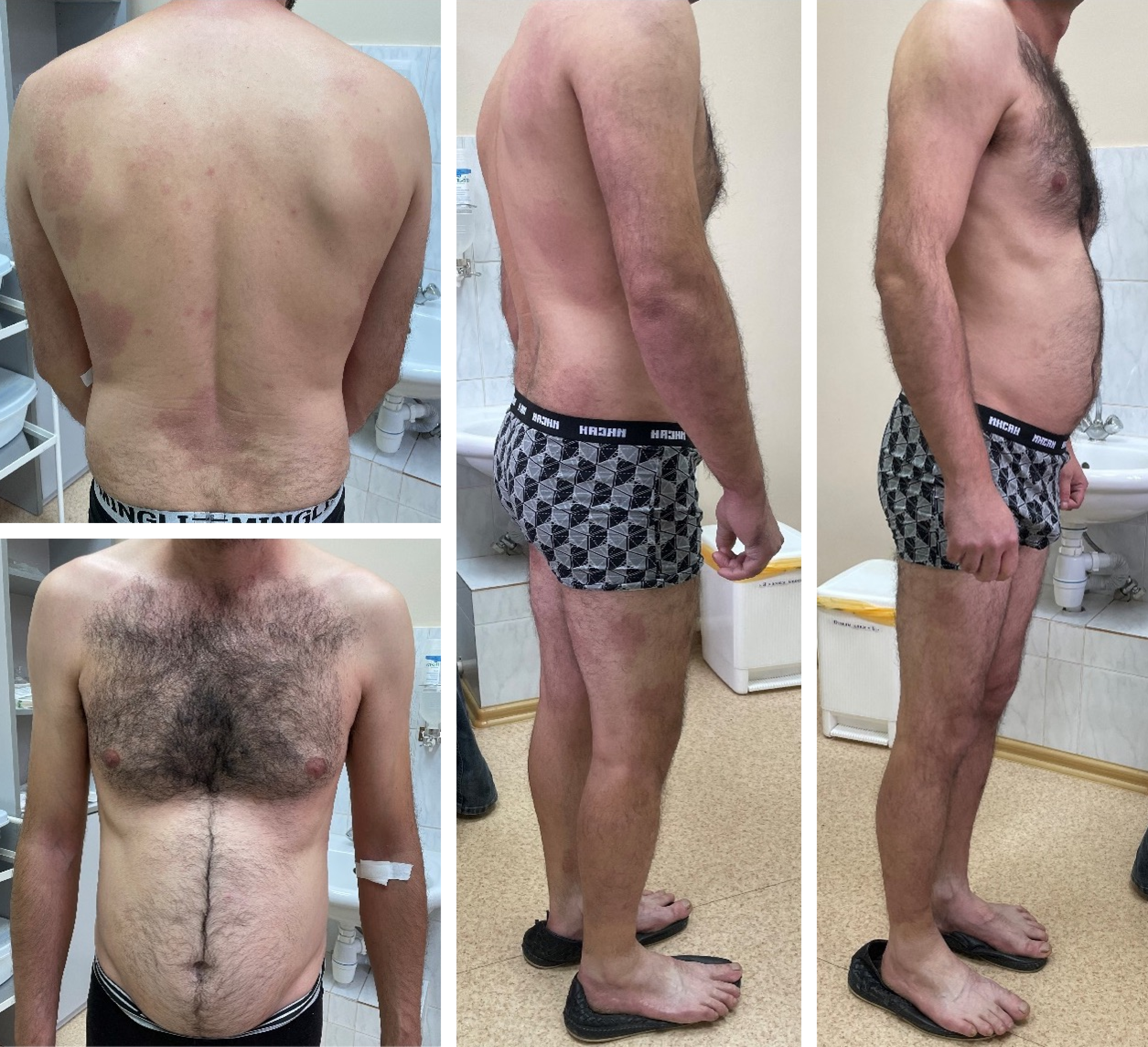 Считает себя больным с 25 лет. Отметил появление высыпаний на коже туловища и верхних конечностей. Обратился к дерматологу в п-ку по м/ж, установлен диагноз: контактный дерматит, получал наружное лечение, энтеросорбенты, отмечал регресс высыпаний. В 26 лет отметил повторный эпизод появления высыпаний, дерматологом назначена наружная терапия по диагнозу: Экзема, отмечал временное улучшение. Далее до 29 лет к дерматологу не обращался самостоятельно длительно использовал тГКС.
