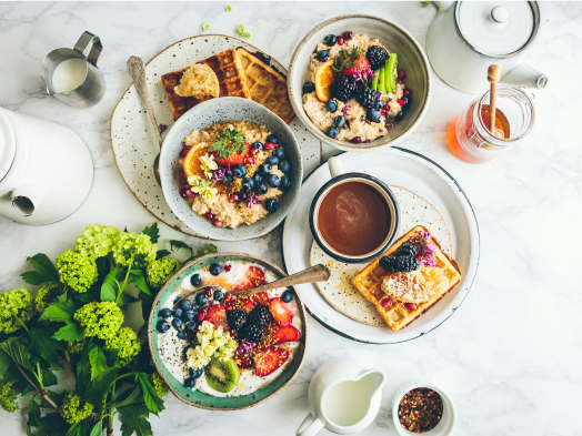 Важно, чтобы основные приемы пищи включали источники белка с высокой биологической ценностью (молоко, мясо, яйца, рыба), при этом все приемы пищи должны включать углеводы (хлеб, макаронные изделия, рис, картофель и т. д.) Считается достаточным, если вы в течение дня потребляете 450–650 г фруктов и овощей.