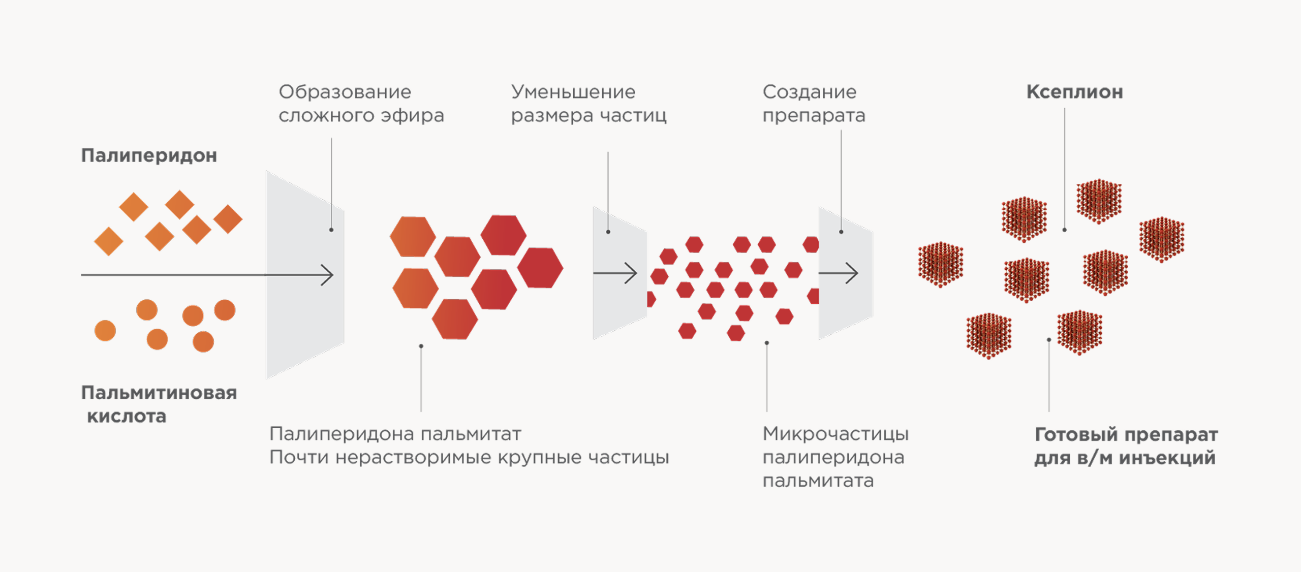 Высвобождение палиперидона пальмитата в течение 1 месяца за счет трансформации в мелкие частицы1