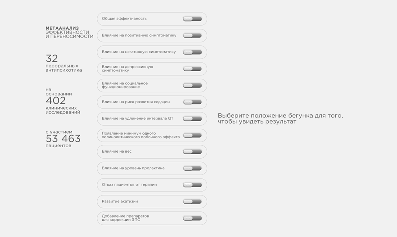 Компания Johnson & Johnson представляет вашему вниманию результаты самого масштабного метаанализа рандомизированных плацебо-контролируемых и прямых сравнительных исследований антипсихотиков, выполненные M. Huhn и соавторами в 2019 г. Этот сетевой метаанализ по сравнению с предыдущими работами 2009 и 2013 гг. отличается максимальным числом исследуемых препаратов и широким перечнем оцениваемых исходов.