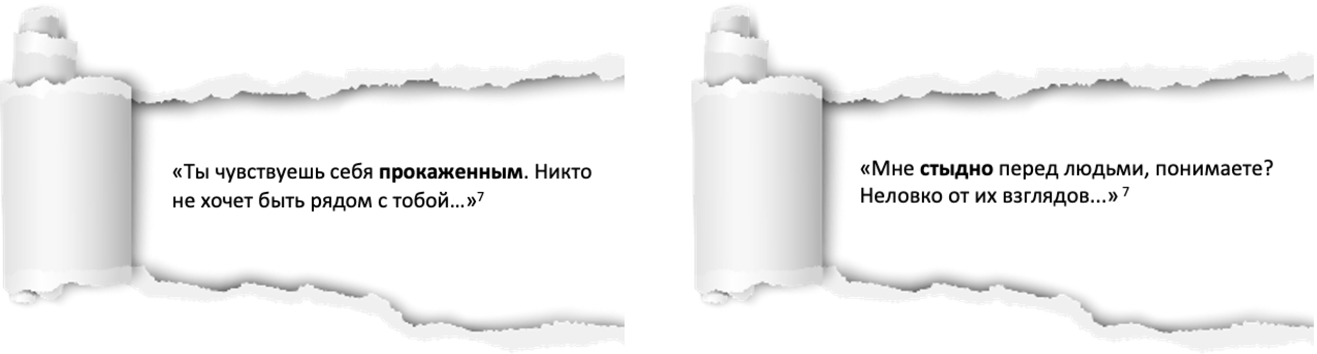 “Большое количество пациентов сообщает об открытом неприятии обществом, например, просят покинуть бассейн, спортивный зал или парикмахерскую[8].”