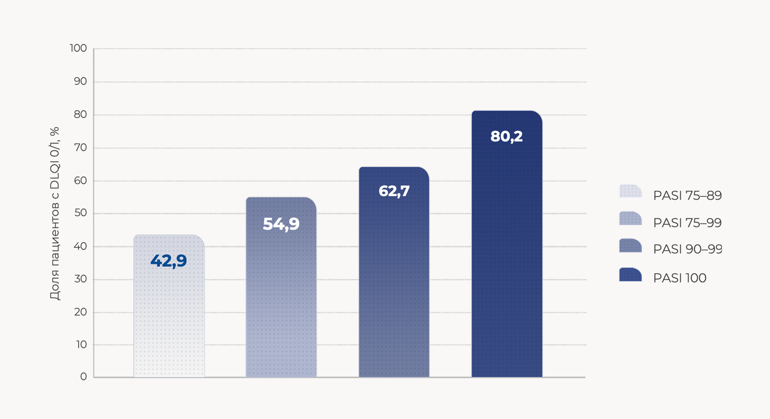 Уменьшение индекса PASI приводит к улучшению показателя качества жизни, связанного со здоровьем[11]
