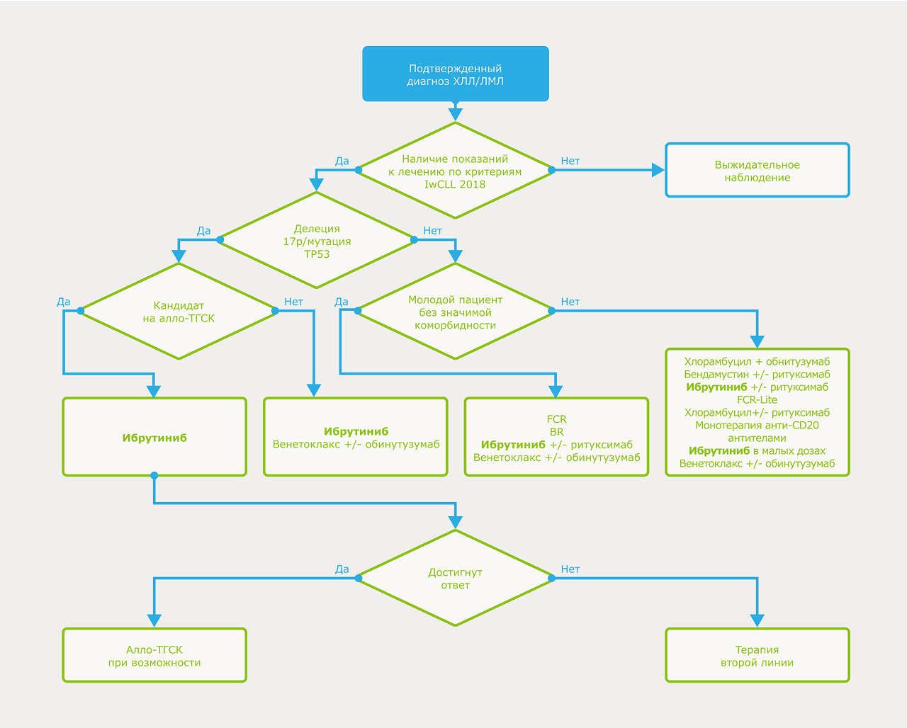 Алгоритм выбора первой линии терапии пациента с ХЛЛ/ЛМЛ