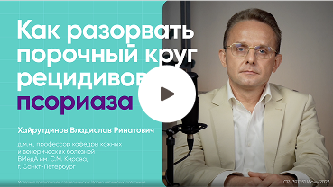В новом видеоролике В. Р. Хайрутдинов и М. М. Хобейш обсудят текущие подходы к выбору терапии псориаза, задумаются о дальнейшем развитии ГИБП и о месте искусственного интеллекта в терапии псориаза.