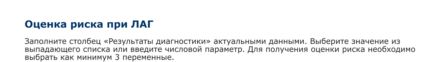 Данный инструмент представляет собой электронную форму клинических рекомендаций. Инструмент не проводит оценку риска для конкретных пациентов и разработан для предоставления быстрого и легкого доступа к информации клинических рекомендаций. При разработке были использованы Европейские клинические рекомендации по диагностике и лечению легочной гипертензии (2022 ESC/ERS Guidelines for the diagnosis and treatment of pulmonary hypertension), для получения дополнительных деталей, пожалуйста, обратитесь к Таблице 16 на странице 45 Европейских клинических рекомендаций.
