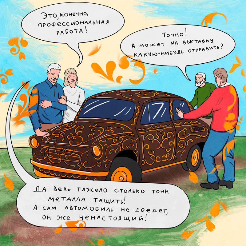 музыкантов есть. Запорожец в полную величину кованый, мотоциклы, черепаха в кресле